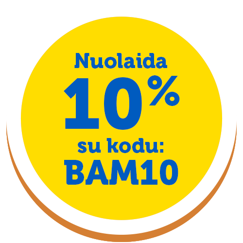 *10% nuolaida pritaikoma pirkimo žingsnyje, įvedus nuolaidos kodą BAM10. Nuolaidos nesumuojamos. Galioja iki 2026 m. balandžio 27 d.